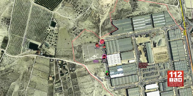 El Centro de Coordinación de Emergencias 1-1-2 Región de Murcia ha recibido diversas llamadas a partir de las 18:10h. informando del incendio declarado en una empresa de desguace situada en ell polígono industrial de Fortuna en la C/Apolo.
