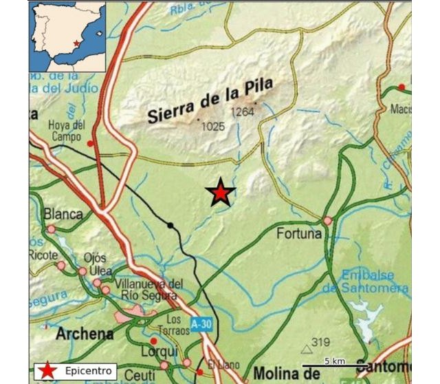 El Instituto Geográfico Nacional ha confirmado el terremoto, que ha tenido lugar a las 17.54 horas, con epicentro al oeste de Fortuna y una magnitud de 2.5.