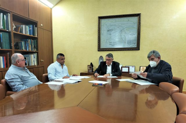 El presidente de la Confederación Hidrográfica del Segura, Mario Urrea, junto al Comisario de Aguas, Francisco Javier García, han mantenido una reunión de trabajo con representantes Sociedad Agraria de Transformación (SAT) 1668 Fortuna encabezada por su presidente, Juan Carlos Benavente.